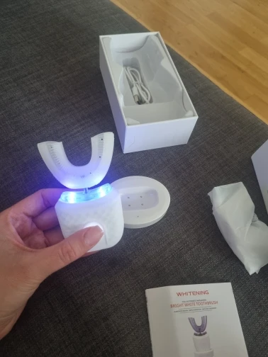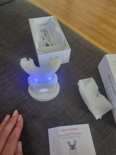 Tandbørsten anvender også blåt lys for en ekstra blegende effekt – helt uden varmeelementer eller skadelige kemikalier.